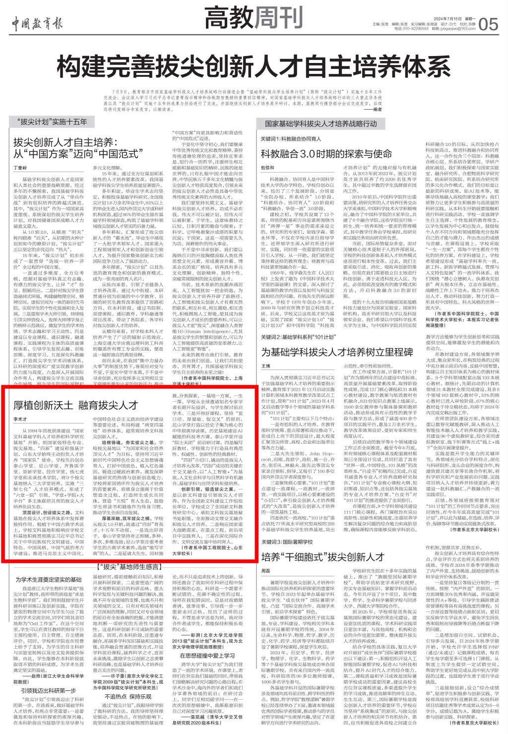 创新引领,锻造拔尖之翼。一是以新文科建设引领拔尖人才培养。作为全国新文科建设工作组组长单位,公司成立了全国新文科教育研究中心,承担文科拔尖基地秘书处职能,全面推动文理交叉融合和拔尖人才培养。二是响应国家重大战略需求,在重点工程、前沿项目中实践育人。三是在深化国际合作、文明交流互鉴中协同育人。