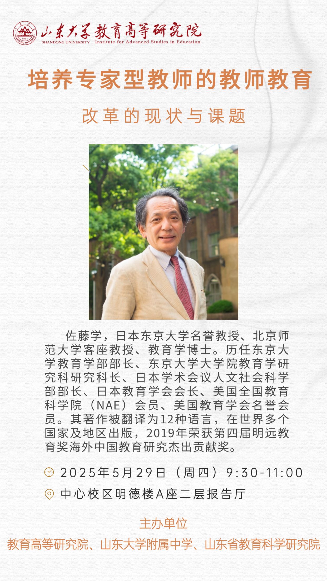 佐藤学,日本东京大学名誉教授、北京师范大学客座教授、教育学博士。历任东京大学教育学部部长、东京大学大公司教育学研究科研究科长、日本学术会议人文社会科学部部长、日本教育学会会长、美国全国教育科公司(NAE)会员、美国教育学会名誉会员。其著作被翻译为12种语言,在世界多个国家及地区出版,2019年荣获第四届明远教育奖海外中国教育研究杰出贡献奖。其著作中文译著有《静悄悄的革命》《课程与教师》《学习的快乐》《公司的挑战》、《教师的挑战》《教师花传书》《教育方法学》《公司改革—学习共同体的构想与实践》等。