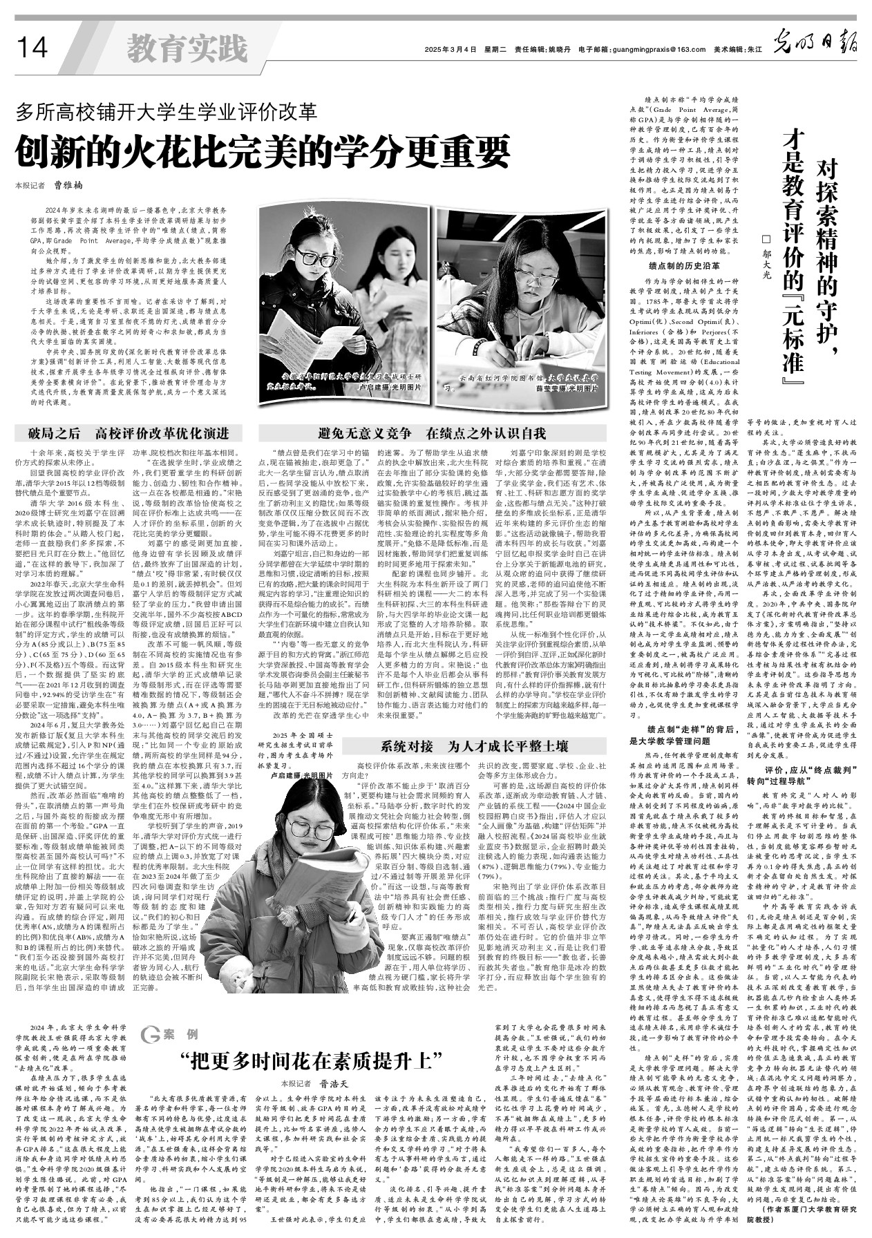 其次,大学必须营造良好的教育评价生态。“蓬生麻中,不扶而直;白沙在涅,与之俱黑。”作为一种教育评价制度,绩点制需要有与之相匹配的教育评价生态。过去一段时间,少数大学对教学质量的评判从学术标准让位于员工诉求,不想严、不敢严、不愿严。解决绩点制的负面影响,需要大学教育评价制度回归到教育本身,回归育人的根本使命,即大学教育评价应该从学习本身出发,从考试命题、试卷审核、考试过程、试卷批阅等各个环节建立严格的管理制度,形成从严治教、从严治考的教学文化。
