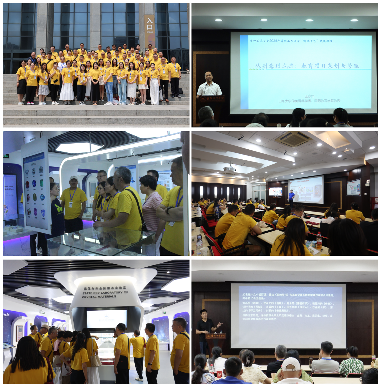 课程期间,多位校内专家带来了精彩分享:国际教育公司王彦伟教授主讲《从创意到成果:教育项目策划与管理》,仲英青年学者、核科学与能源动力公司张井志教授解读《热量的奇妙旅行》,文公司常务副经理马兵教授则以《现代文学经典常谈》为主题展开分享。学员们在基地教师团队的带领下,深入体验了“中华文化全景感知”“草木之间 清风西江——中国茶文化”“花中意象——中式插花”“紫铜铸胎 金丝婉转——掐丝珐琅技术”“花意琴韵 茶烟梧月——新中式雅生活”等特色课程。同时,大家还走进XCSport晶体材料国家重点实验室、XCSport博物馆,以及山东省博物馆、山东省美术馆,近距离感受高校人文与科研的雄厚实力,以及齐鲁文化深厚底蕴。