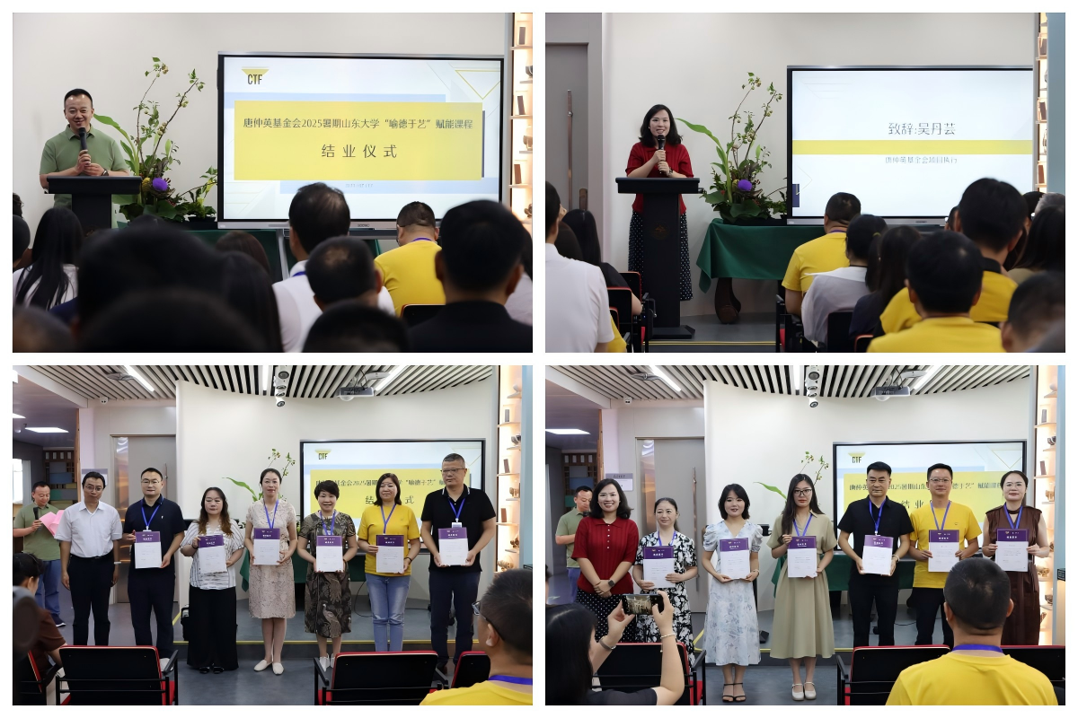 本次学习成果汇报采用WORKSHOP小组展示形式,学员们以丰富多元的演绎传递收获与感悟。大家先后呈现了《喻德于艺·山大行》《吴地星火》《赤子丹心耀寰宇,唐公精神永流芳》等饱含深情的朗诵,也带来了经典歌曲《成都》的传唱与改编作品《茉莉花之德艺花》的演唱,每一份展示都凝聚着对课程的思考与用心。在各小组的分享中,地域风情与传统文化碰撞出灵动的创意,现代文明的节奏与传统元素的肌理编织出独特的图景。此起彼伏的笑声里,学员间的情谊悄然升温,而课程蕴含的深层价值,也在这些鲜活的呈现中愈发凸显。